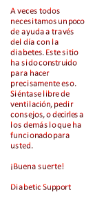 Este sitio se ha construido para dar la ayuda a los que tratan con La Diabetes.
